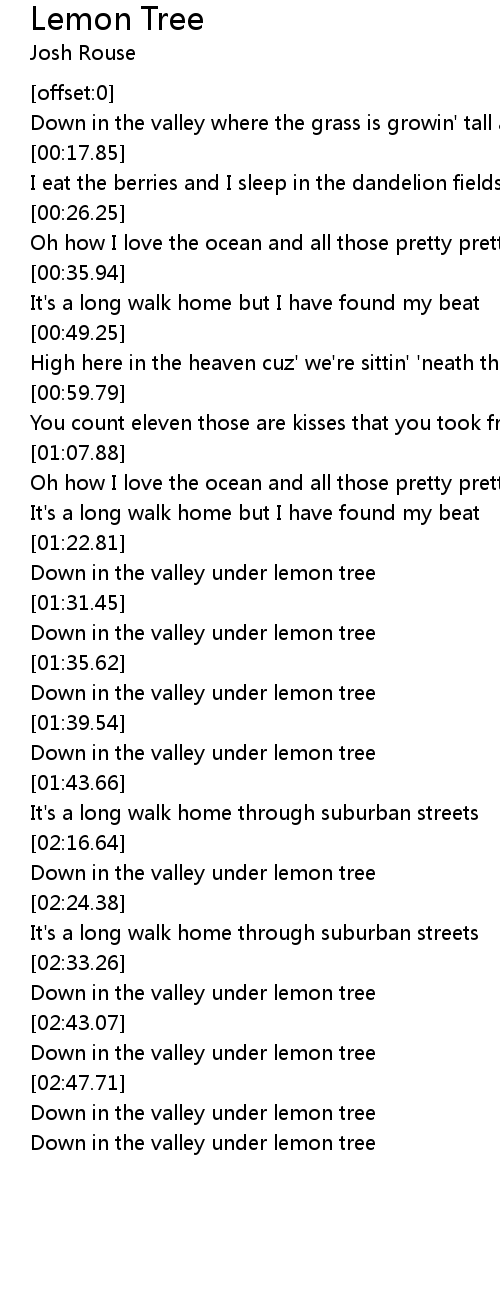 High here in the heaven cuz' we're sittin' 'neath the lemon tree |