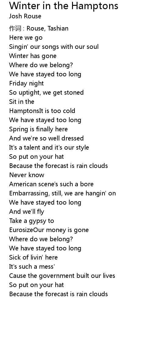 | Song | Winter in the Hamptons |