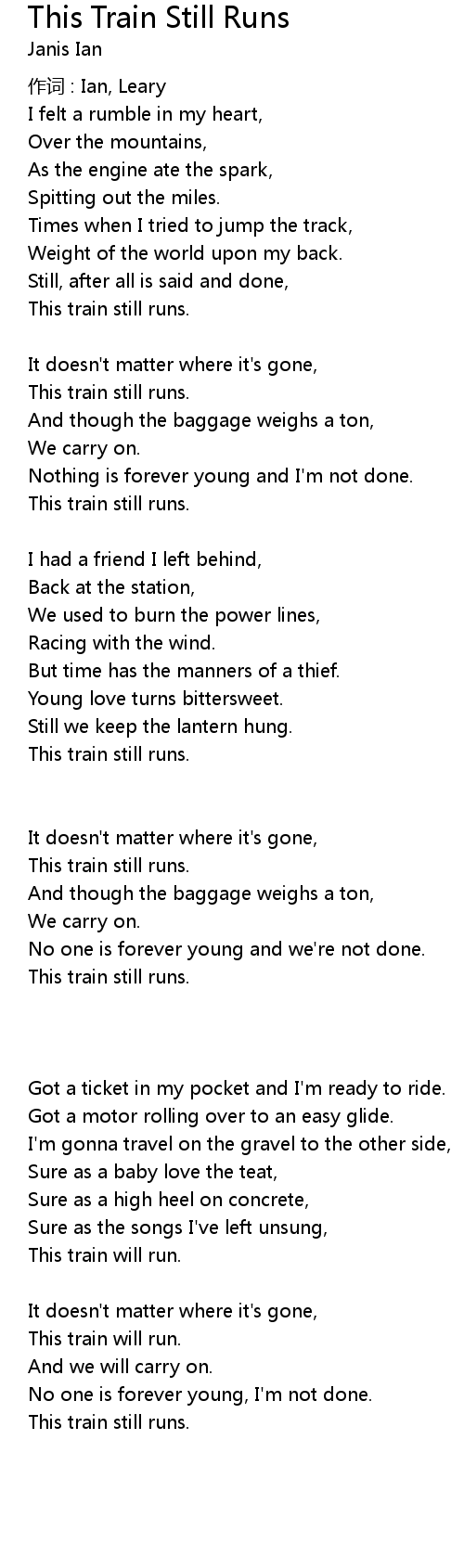 | Song | This Train Still Runs |
