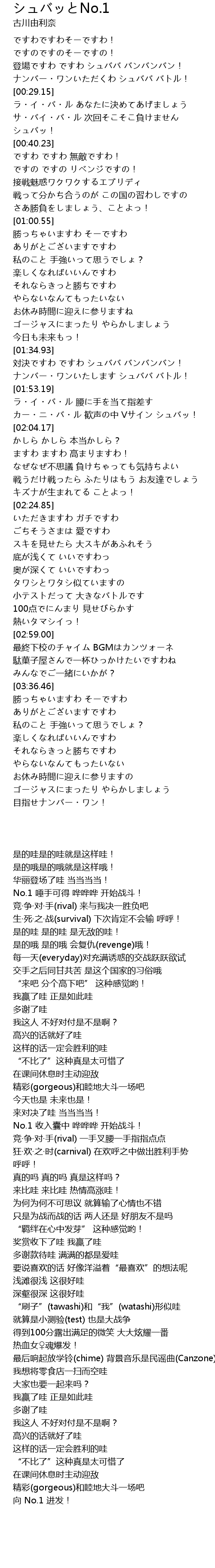 | [00:24.42] | ナンバー・ワンいただくわ シュババ バトル! |