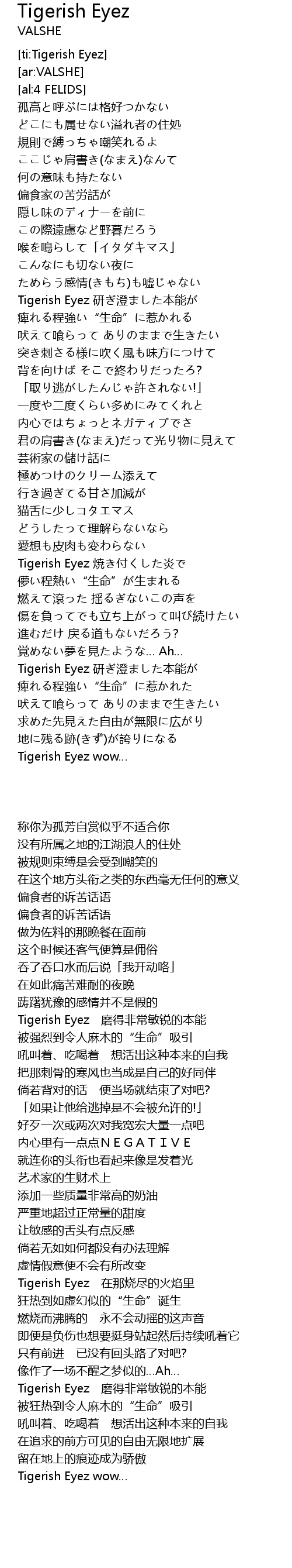 | [02:44.06] | Tigerish Eyez 焼き付くした炎で |