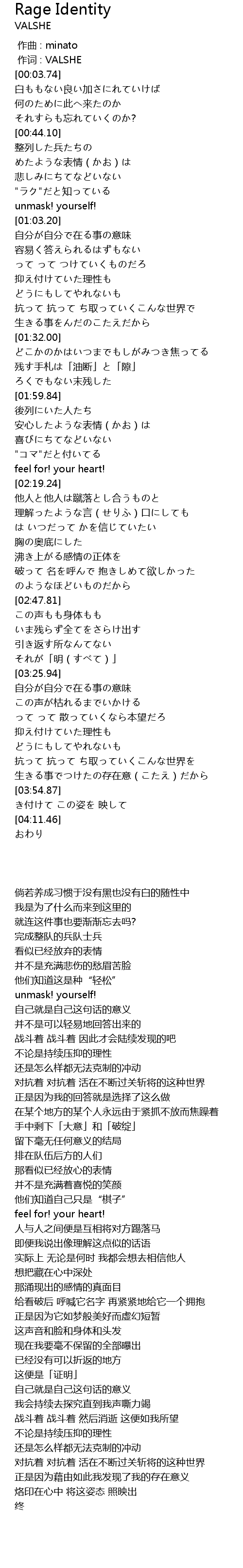 | [03:26.06] | 自分が自分で在る事の意味 |