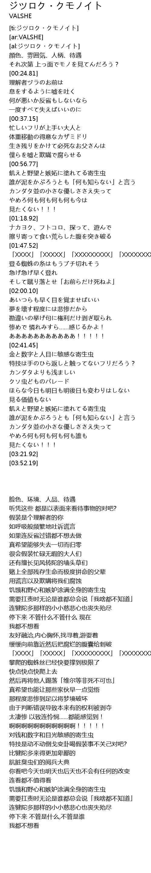 | [00:58.58] | 飢えと野望と嫉妬に塗れてる寄生虫 |