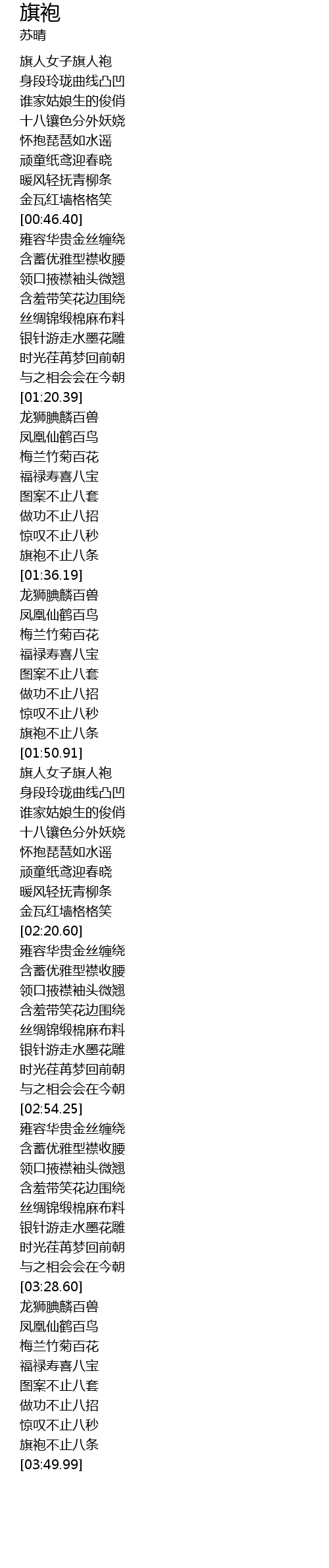 | [01:51.16] | qí rén nǚ zǐ qí rén páo |