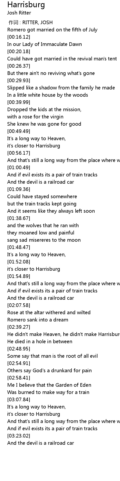 | [02:41.08] | He didn't make Heaven, he didn't make Harrisburg |