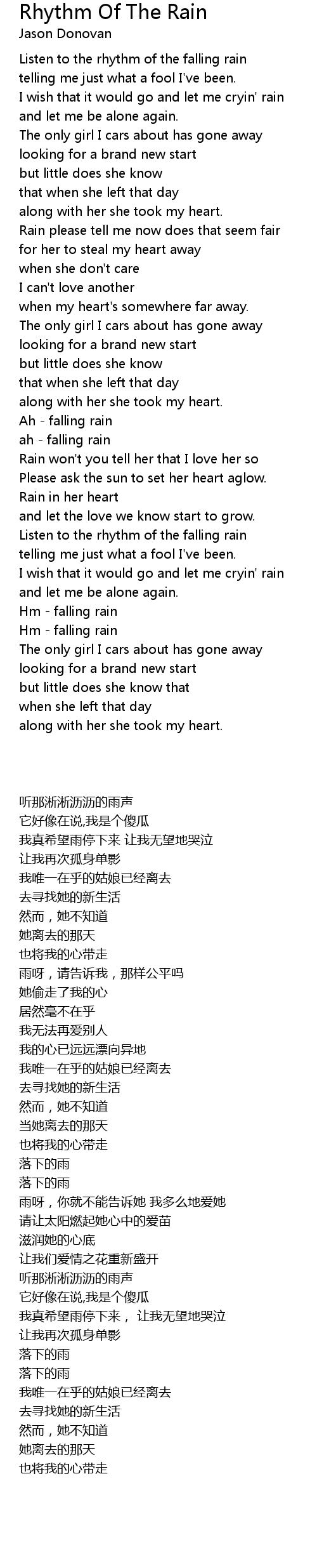 Listen to the rhythm of the falling rain |