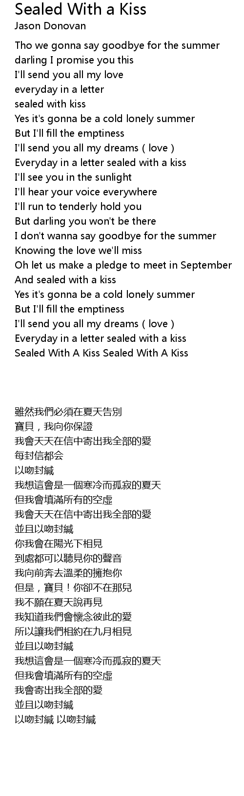 | [02:17.67] | Sealed With A Kiss Sealed With A Kiss |