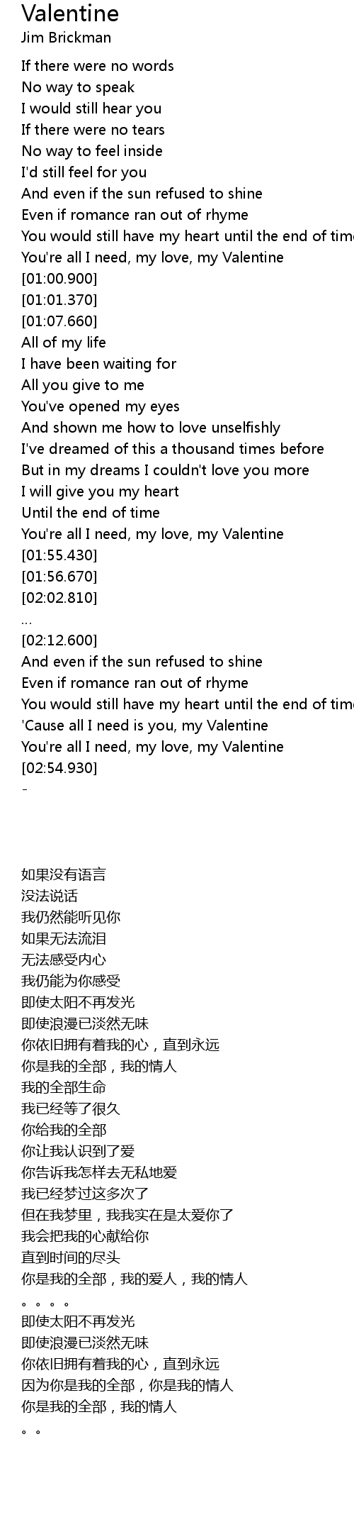 | [00:53.520] | You' re all I need, my love, my Valentine |