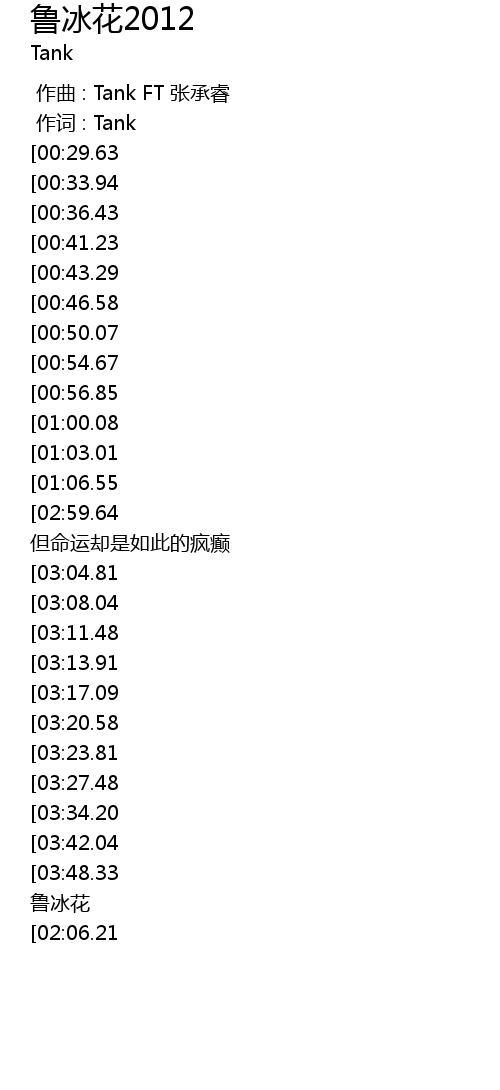 | [00:00.00] | zuo qu : Tank FT zhang cheng rui |