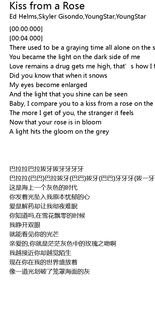 | [00:41.000] | Baby, I compare you to a kiss from a rose on the grey |