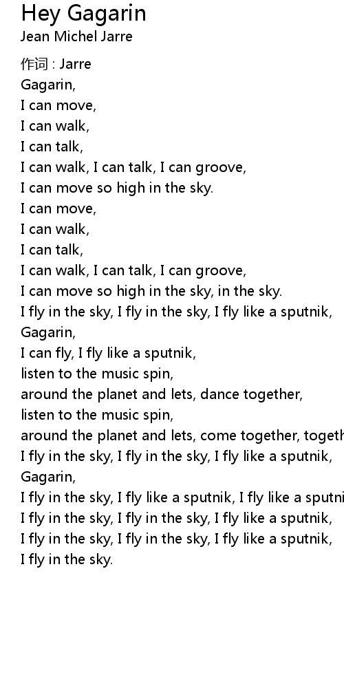 | I fly in the sky, I fly in the sky, I fly like a sputnik, | |