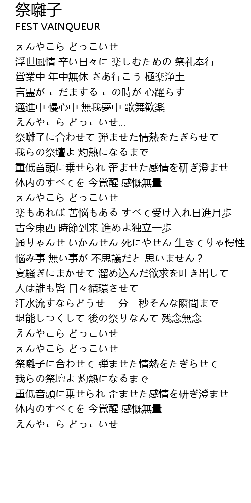 | [03:05.93] | 祭囃子に合わせて 弾ませた情熱をたぎらせて |