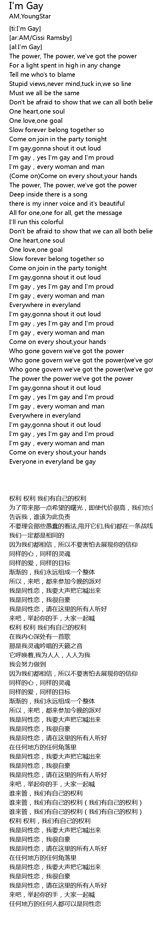 | [01:41.96] | I'm gay,yes I'm gay and I'm proud |