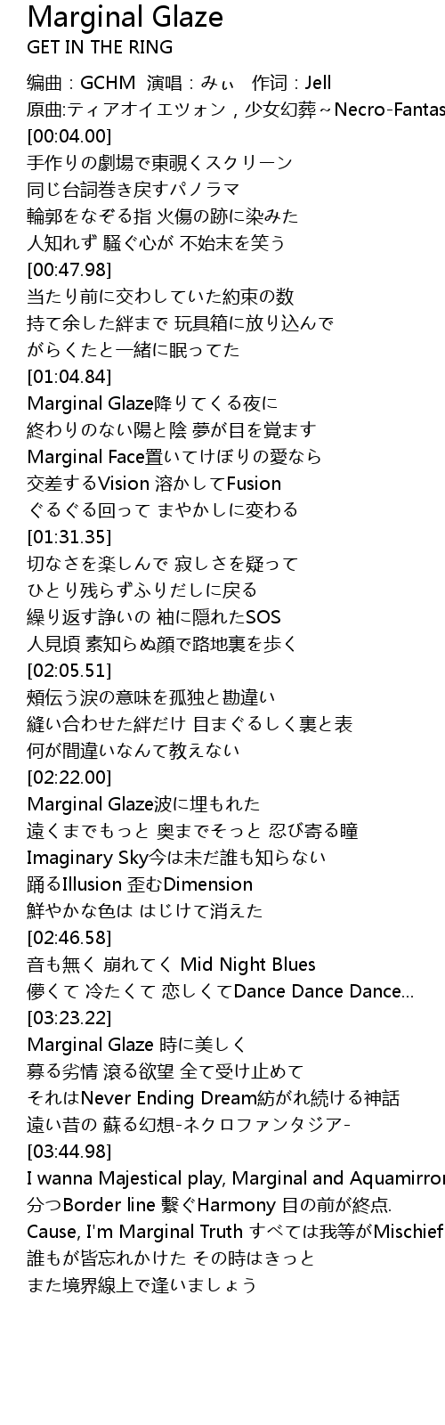| [03:24.26] | Marginal Glaze 時に美しく |