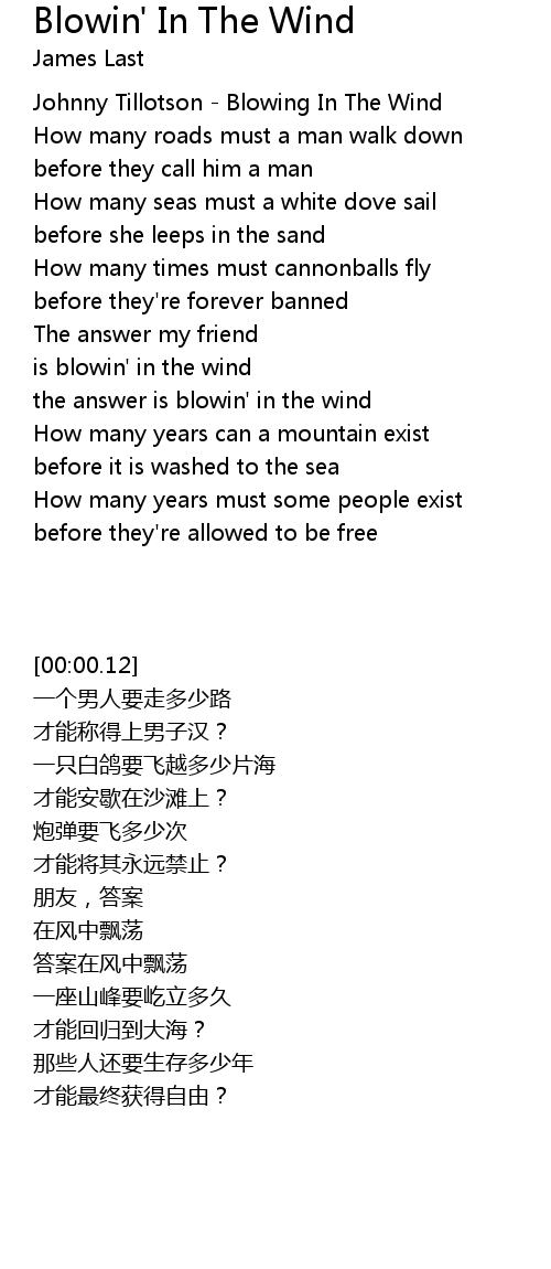 [00:00.12] Johnny Tillotson - Blowing In The Wind