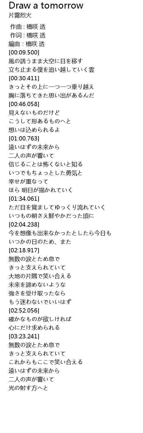 | [00:01.00] | 作词 : 橋咲 透 |