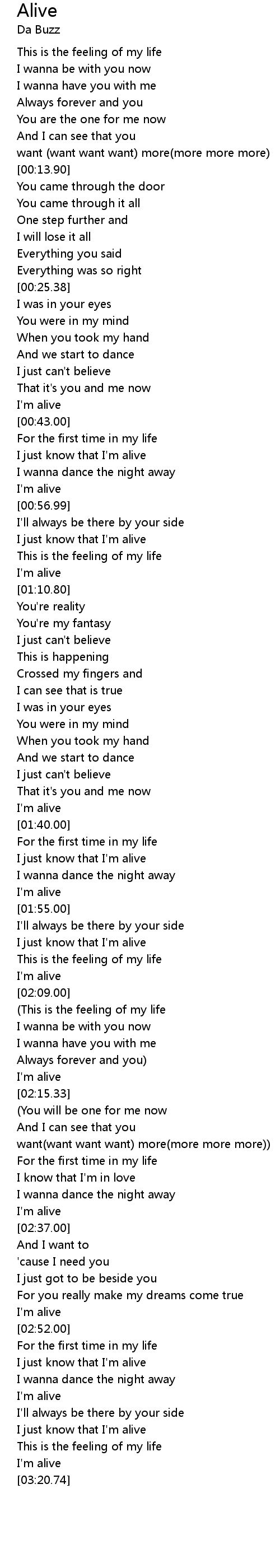 I just know that I'm alive |
