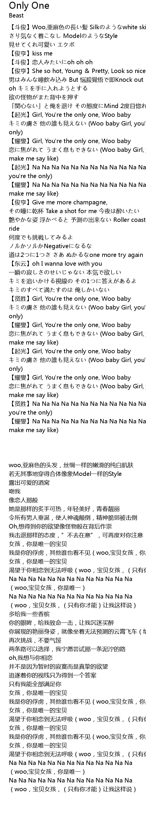 | [02:22.73] | 【耀燮】Girl, You're the only one, Woo baby |