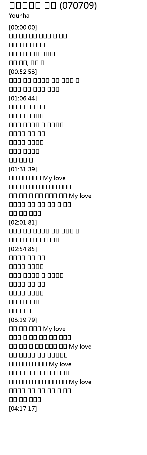 | [03:43.30] | 시간 속에 널 그리워 My love |