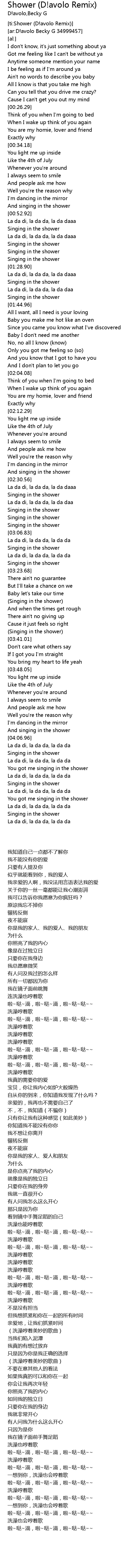 | [01:43.65] | Singing in the shower |