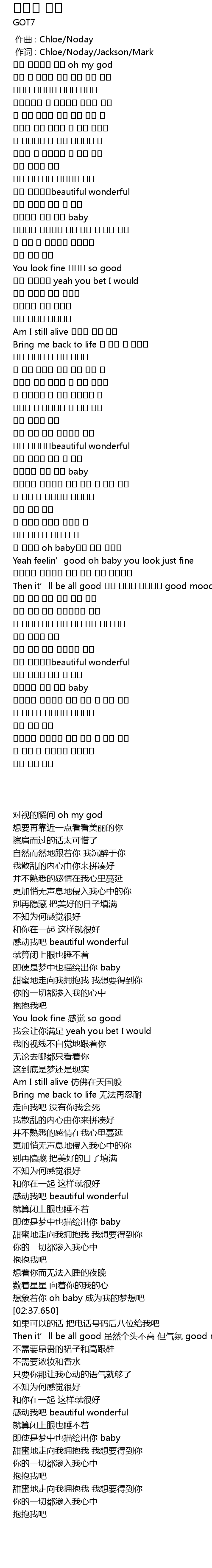 | [00:19.430] | 눈이 마주치는 순간 oh my god |