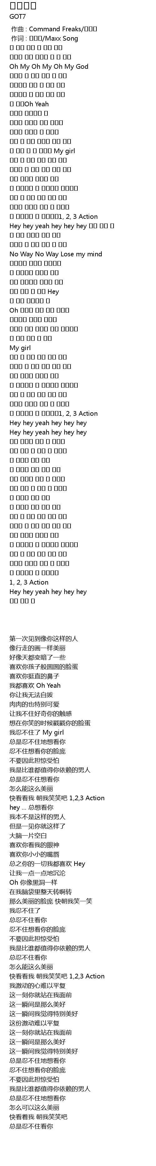 | [02:03.040] | 날 바라봐요 좀 웃어봐요1, 2, 3 Action |