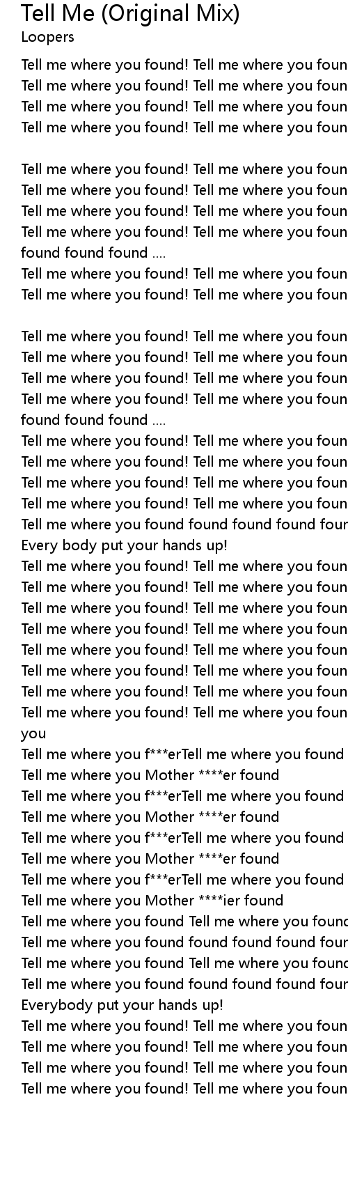 | [02:19] | Tell me where you found Tell me where you found Tell me where you found Tell me where you found found found found found .... |