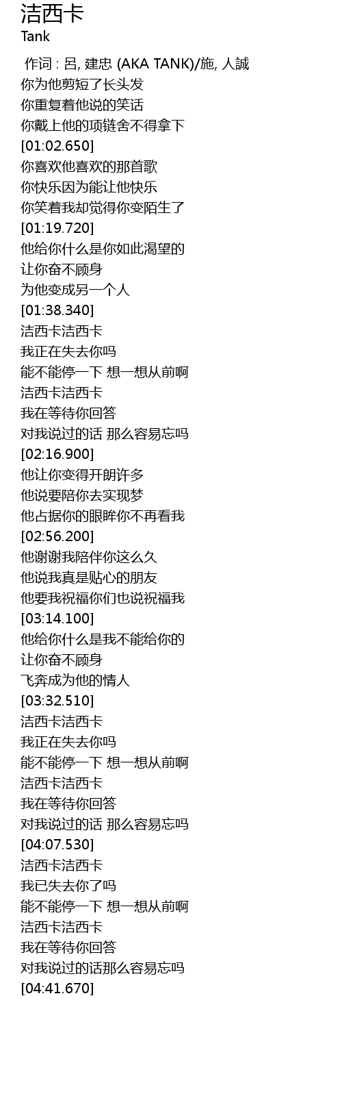 | [03:34.400] | 洁西卡洁西卡 |