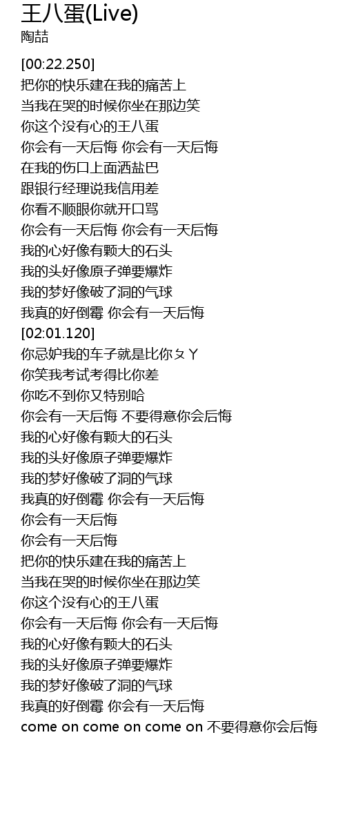 | [00:50.300] | 你这个没有心的王八蛋 |