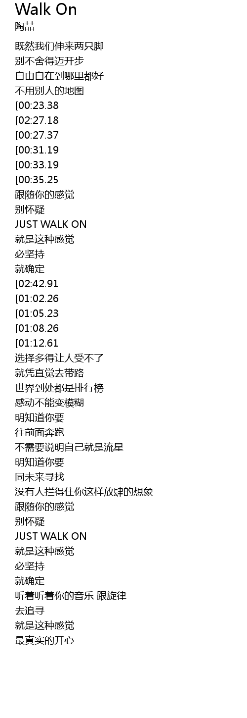 | [01:58.68] | JUST WALK ON |