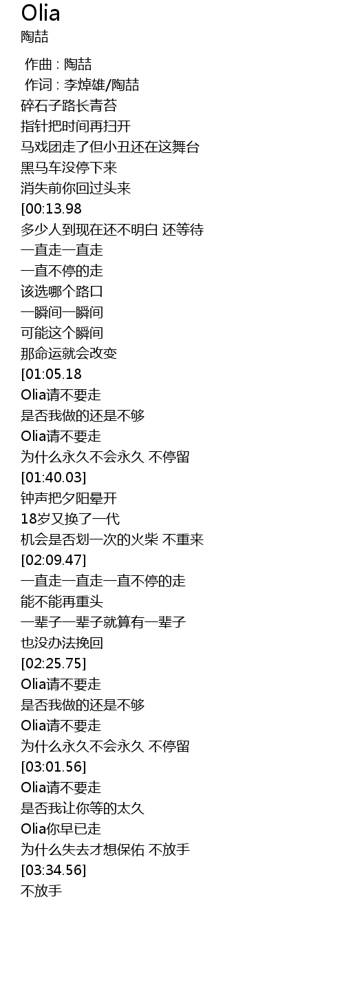 | [03:01.83] | Olia请不要走 |