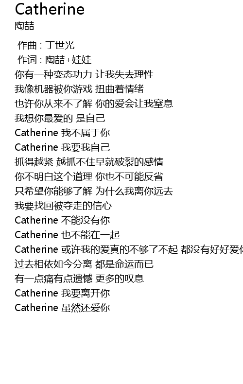 | [01:11.120] | Catherine wǒ yào wǒ zì jǐ |