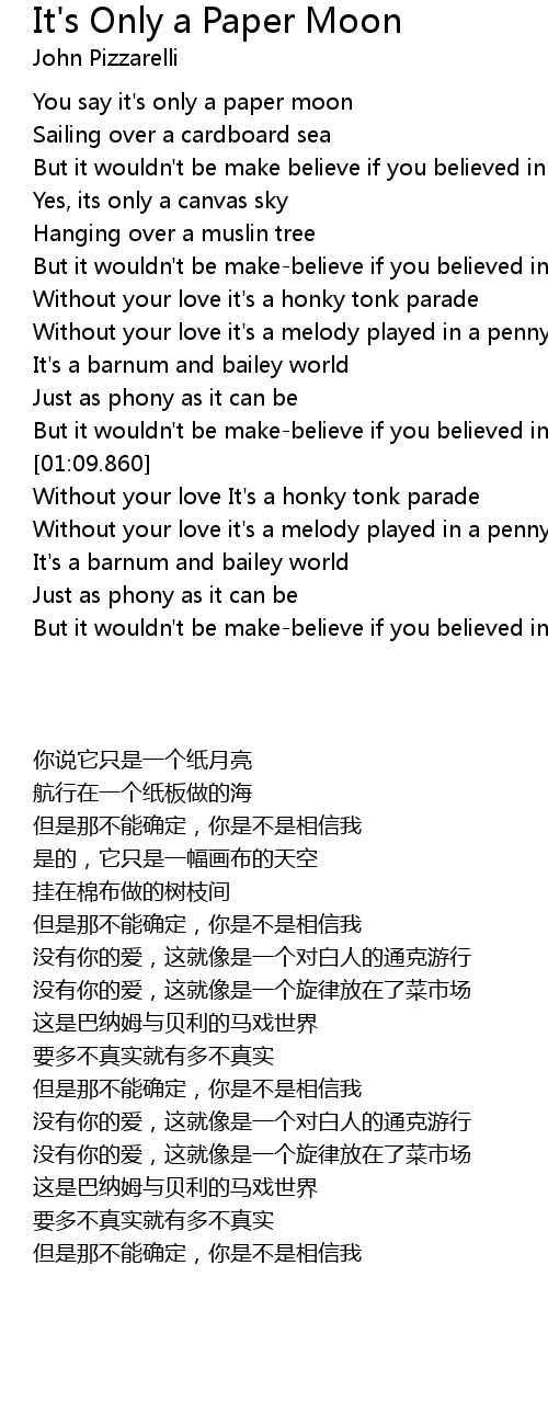 You say it's only a paper moon |