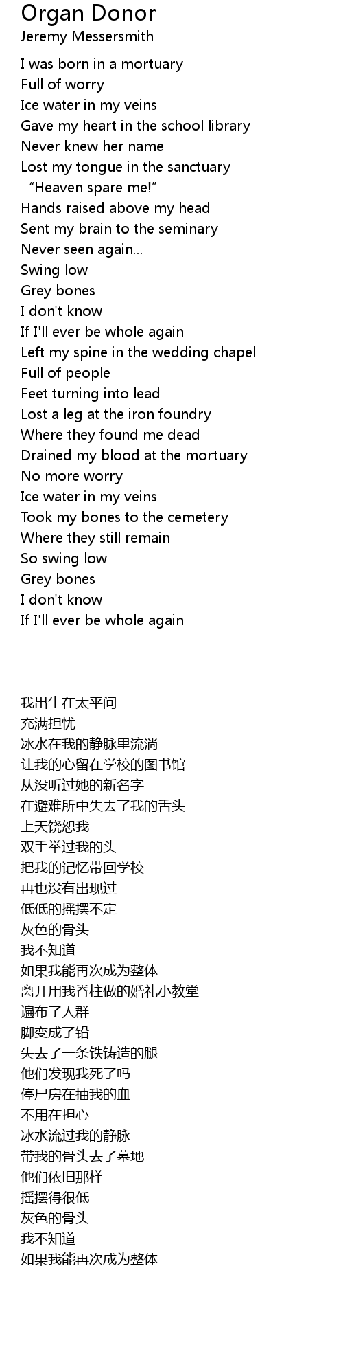 | Song | Organ Donor |