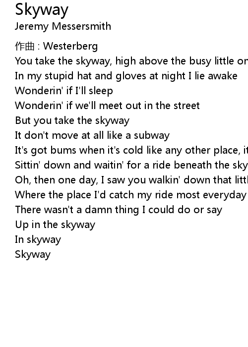 | Sittin' down and waitin' for a ride beneath the skyway | |