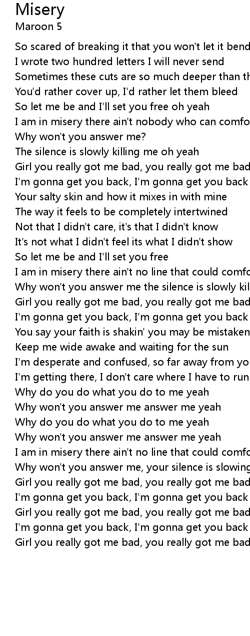 I am in misery there ain't nobody who can comfort me oh yeah |