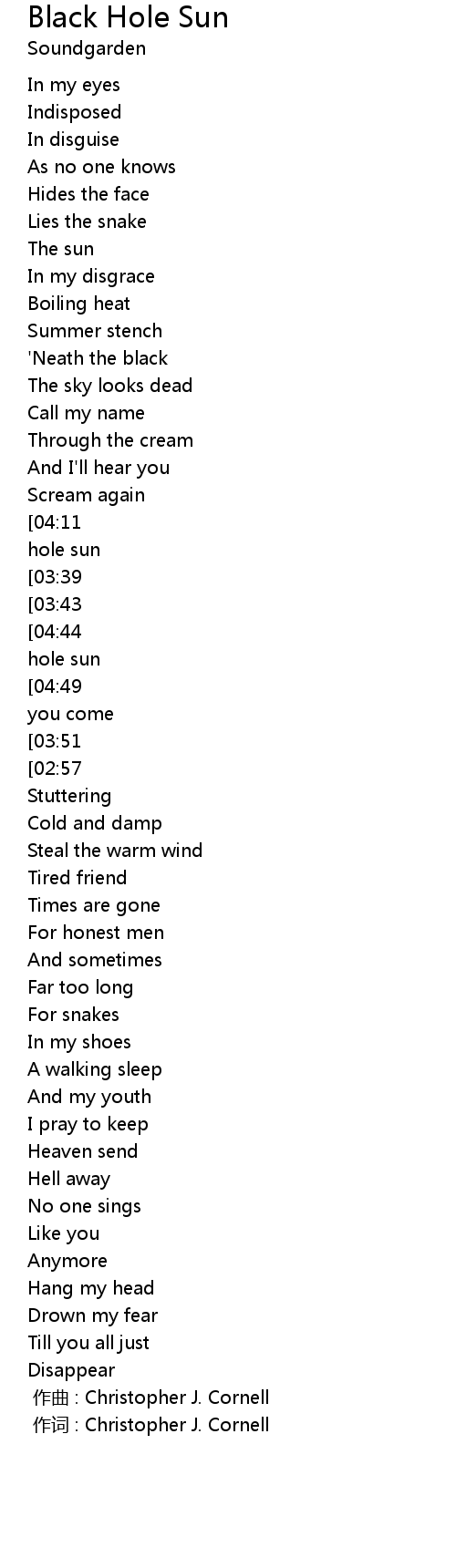 | [00:00.00] | 作词 : Christopher J. Cornell |