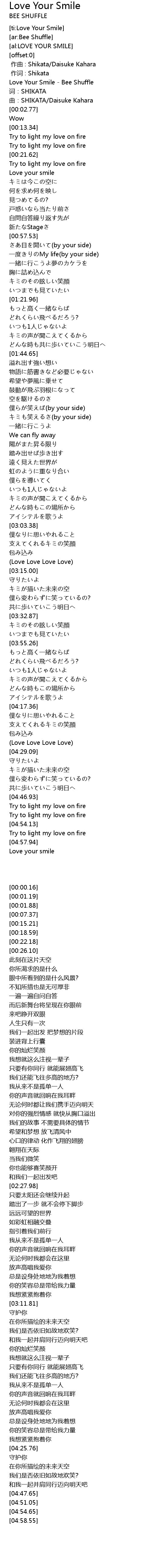 | [00:00.16] | Love Your Smile - Bee Shuffle |