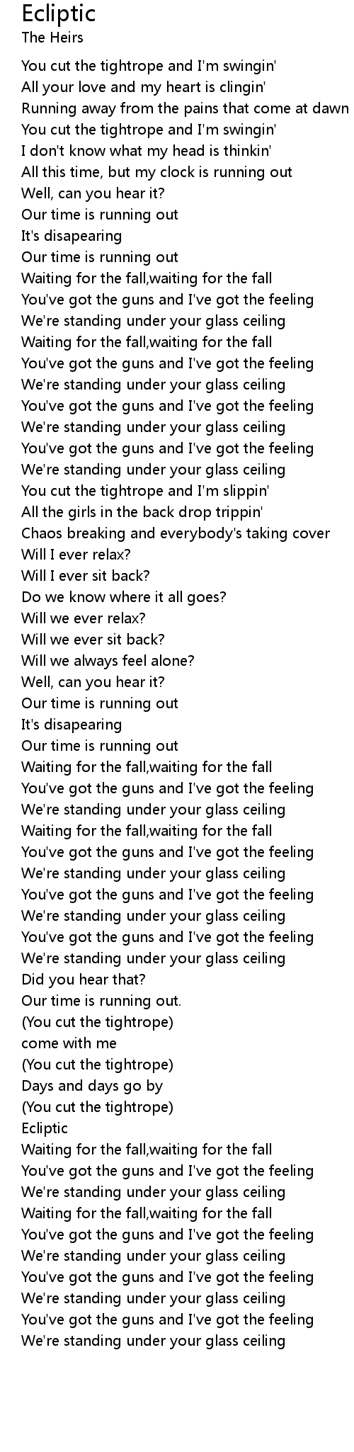 | [04:01.49] | We're standing under your glass ceiling |