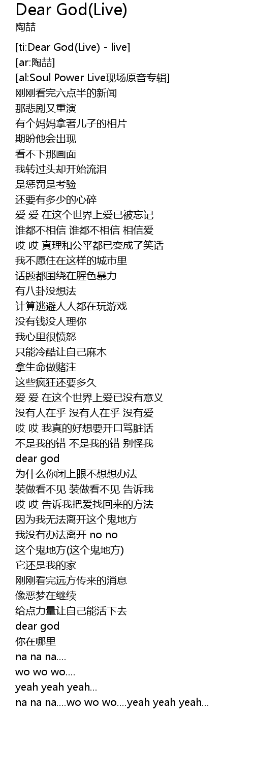 | ti: Dear God Live live | |