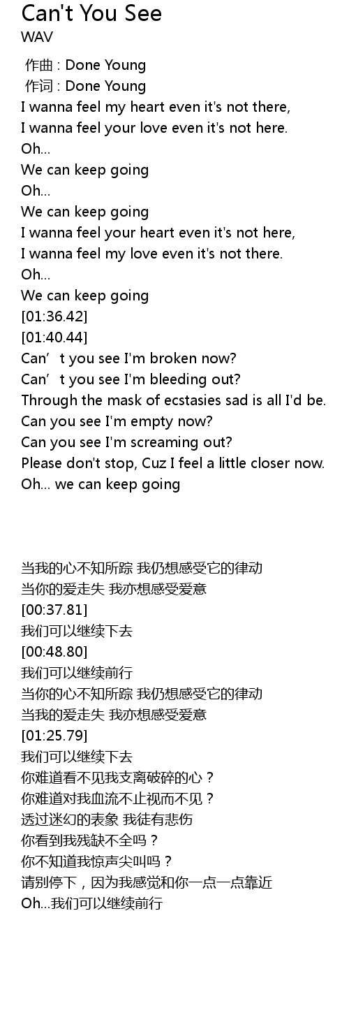 | [01:48.24] | Can' t you see I' m broken now? |