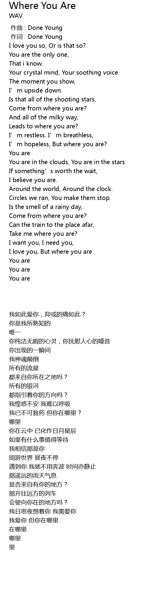 | [02:47.73] | I love you, But where you are |