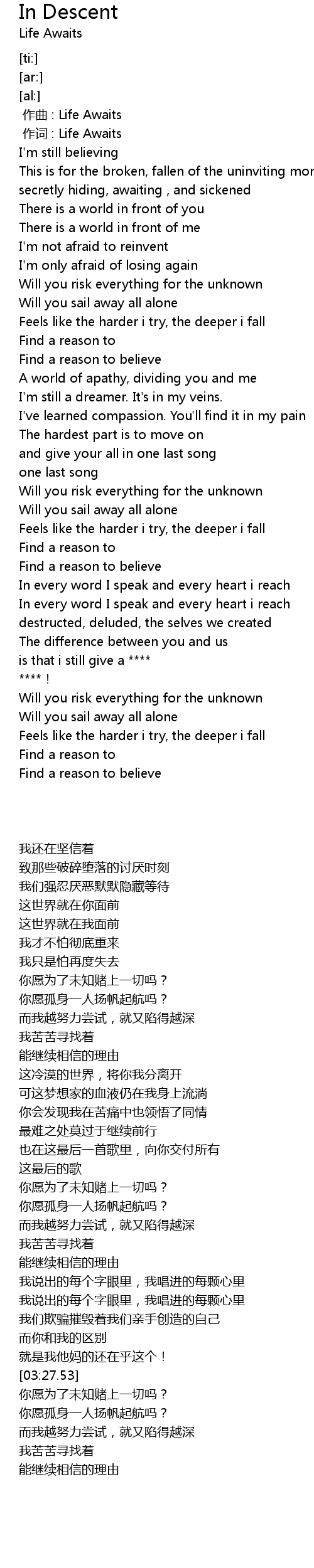 | [00:35.94] | This is for the broken, fallen of the uninviting moments |