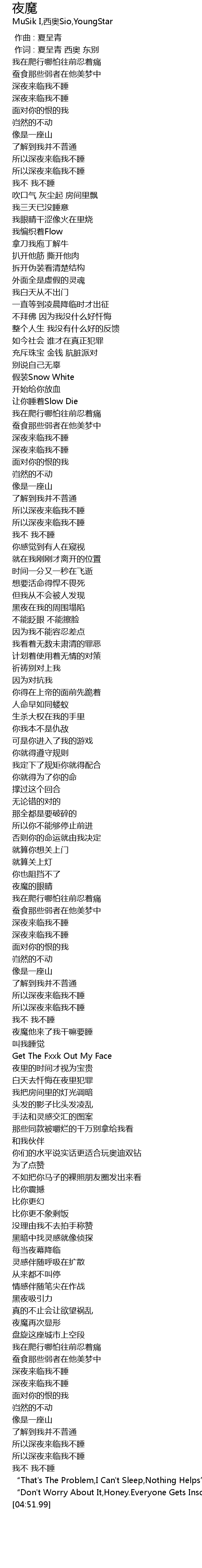 | [03:19.18] | 夜魔他来了我干嘛要睡 |