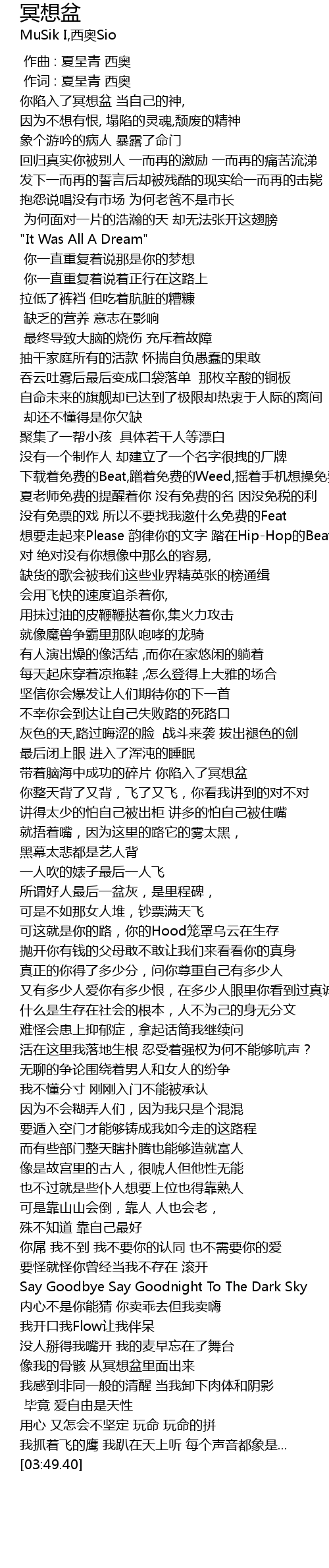 | [00:48.34] | 抱怨说唱没有市场 为何老爸不是市长 |
