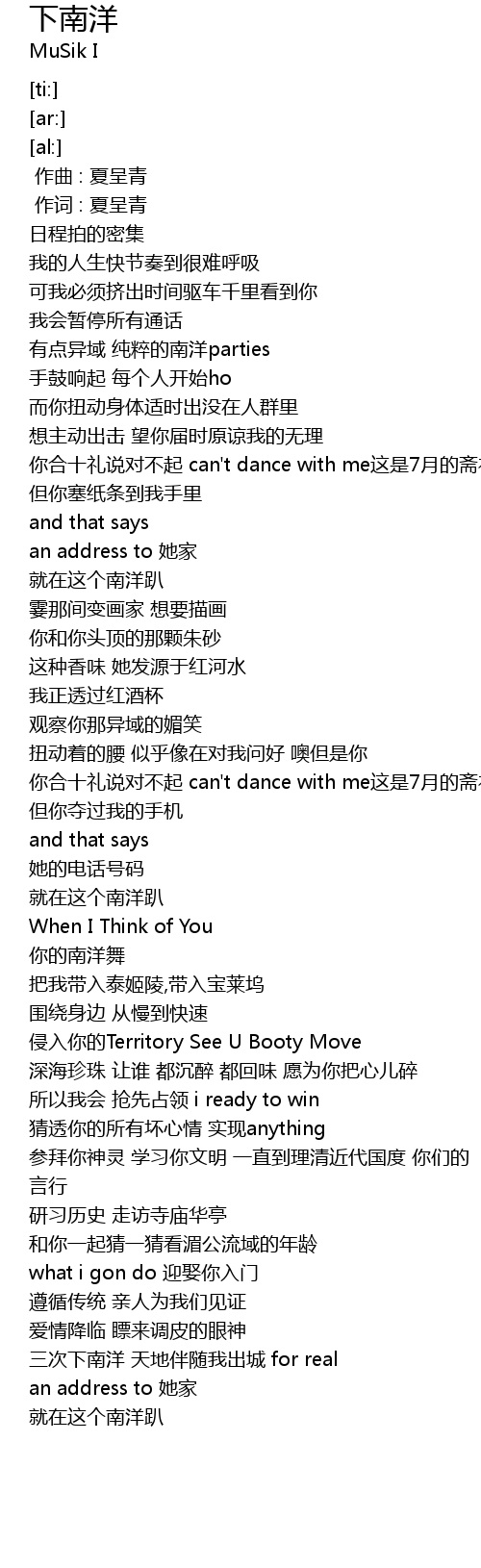 | [02:10.13] | 你的南洋舞 |