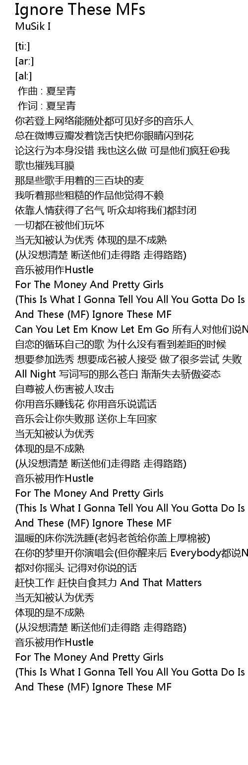 | [01:08.70] | And These (MF) Ignore These MF |