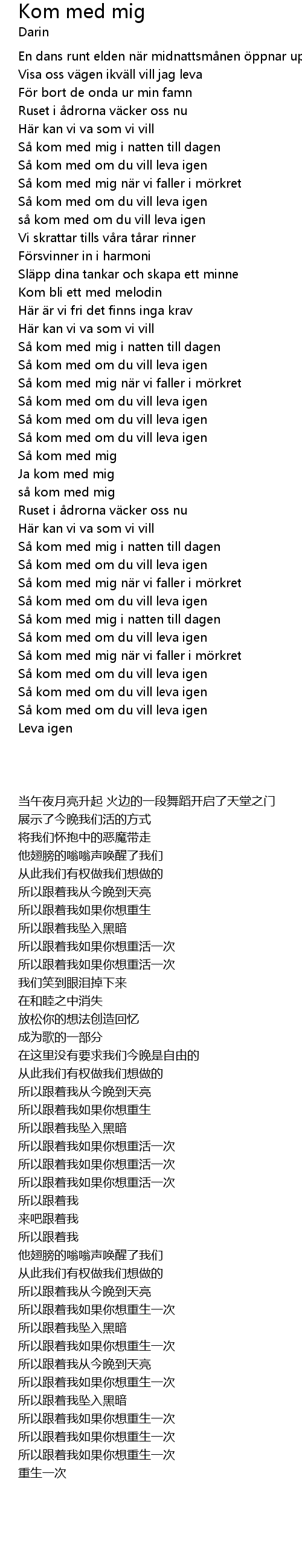 | [01:32.31] | Så kom med mig när vi faller i mörkret |
