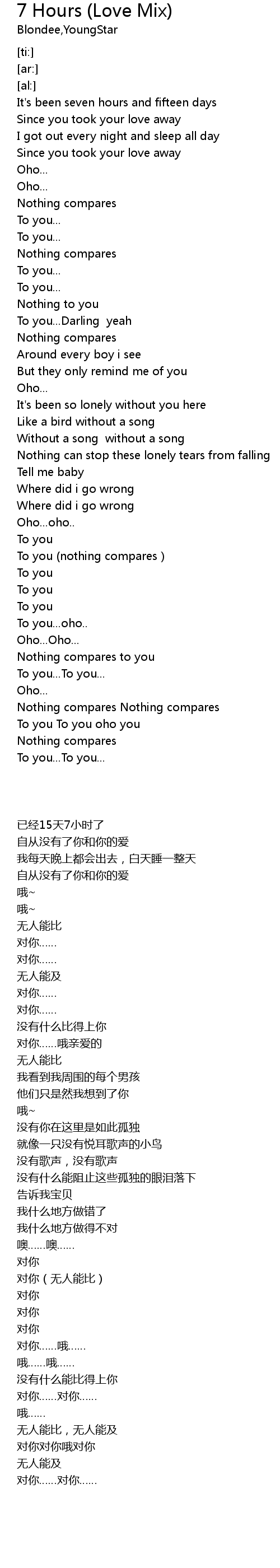 | [00:47.45] | It' s been seven hours and fifteen days |