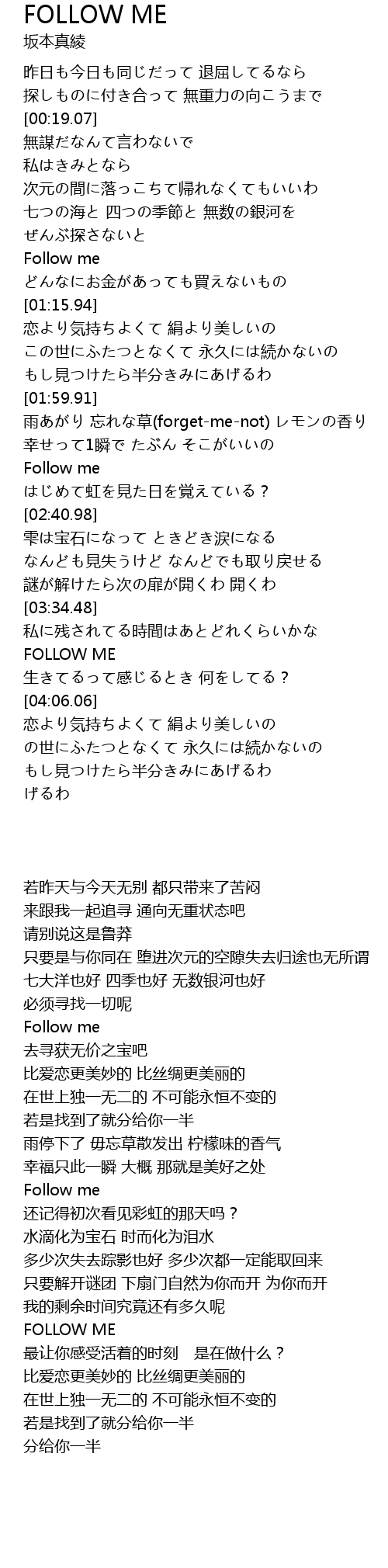 | [03:54.06] | FOLLOW ME |